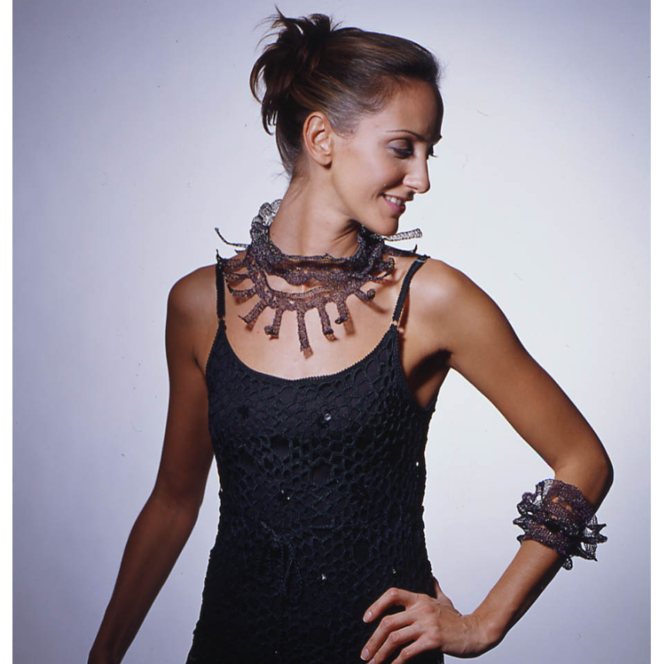 Wire knitted jewellery created for Machine Knitting News as patterns for the readers to knit their own versions on the standard gauge, domestic knitting machine.
