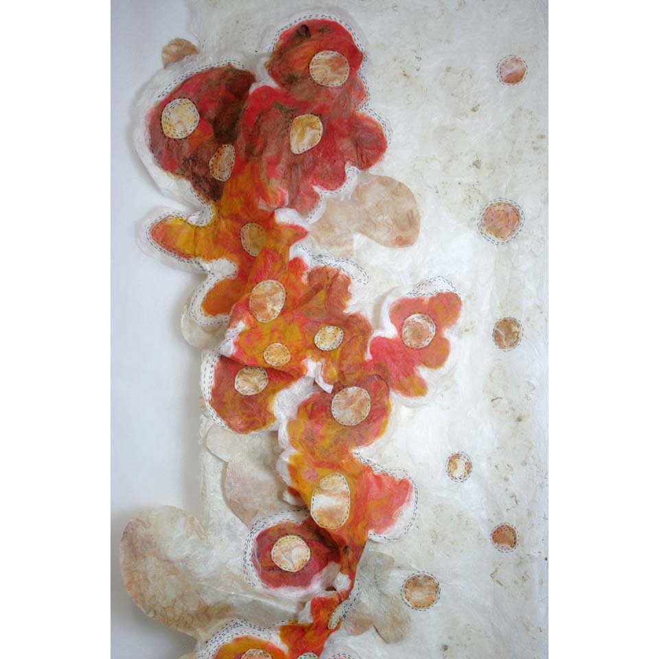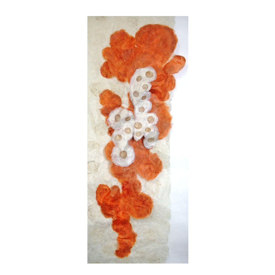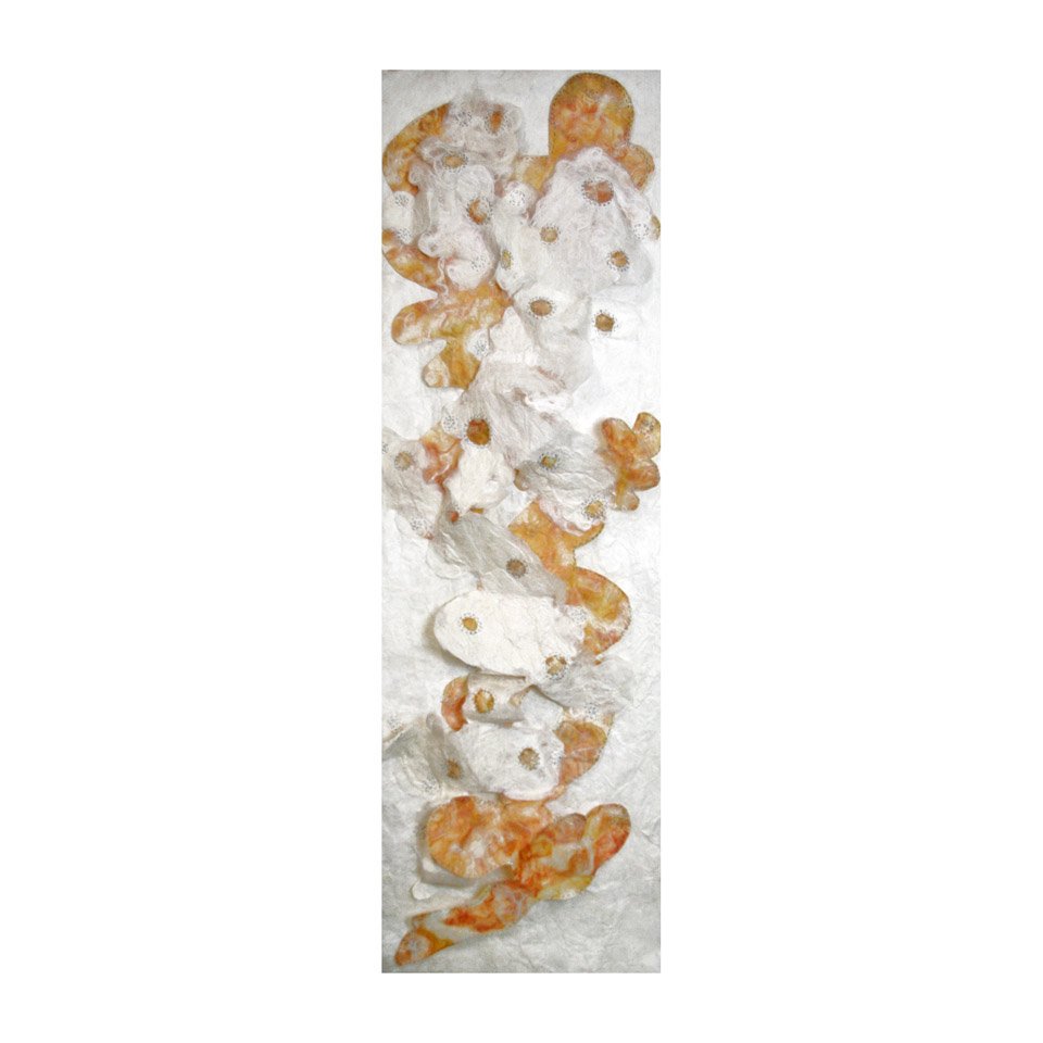 White Gold Silk and wool fibre papers, stitched, cut and manipulated into large scale hanging panels. Share this: Click to share on X (Opens in new window) X Click to share on Facebook (Opens in new window) Facebook Like Loading...