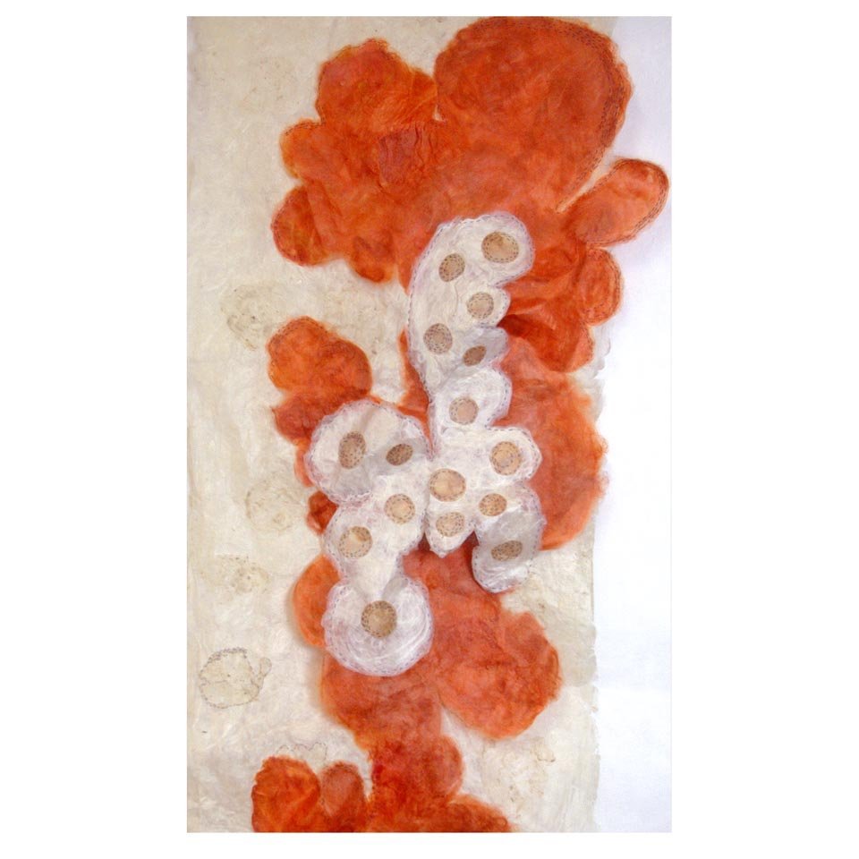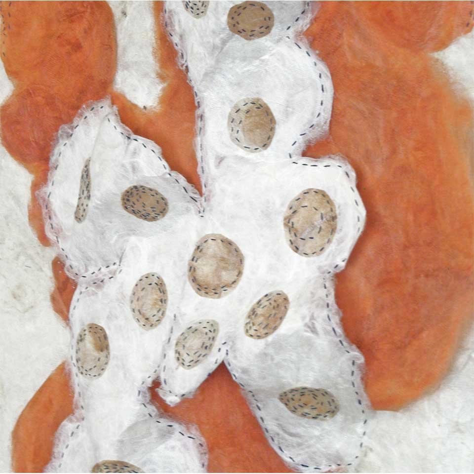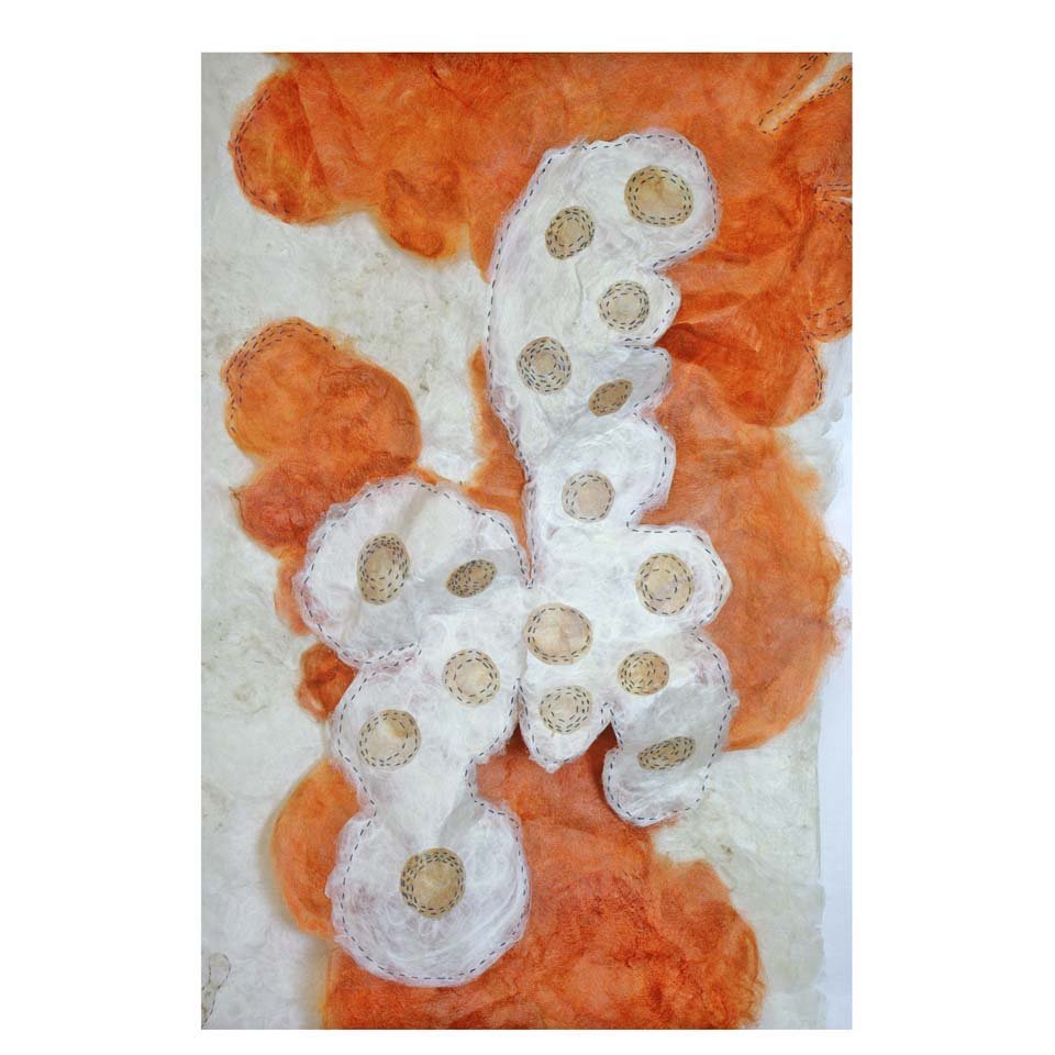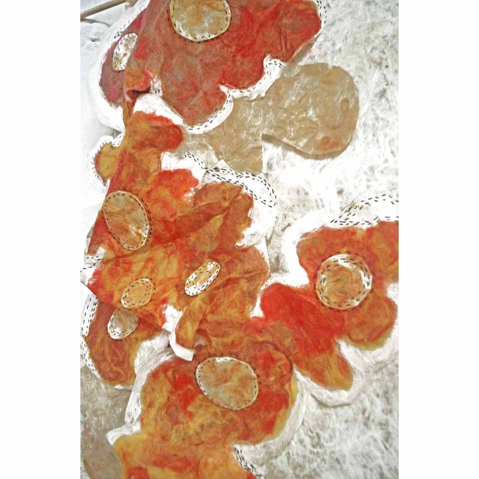 White Gold Silk and wool fibre papers, stitched, cut and manipulated into large scale hanging panels. Share this: Click to share on X (Opens in new window) X Click to share on Facebook (Opens in new window) Facebook Like Loading...